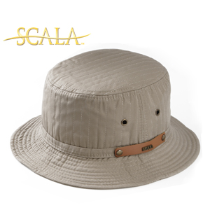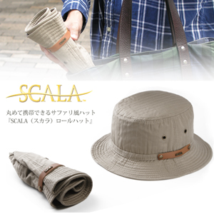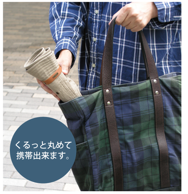 | クルッと丸めて牛革バンドで留めれば、バッグに忍ばせたり、ズボンの後ろポケットに差し込んで持ち歩けます。全体にステッチを入れることで、シワを防いで型崩れしにくいので、かぶる時も安心。 |